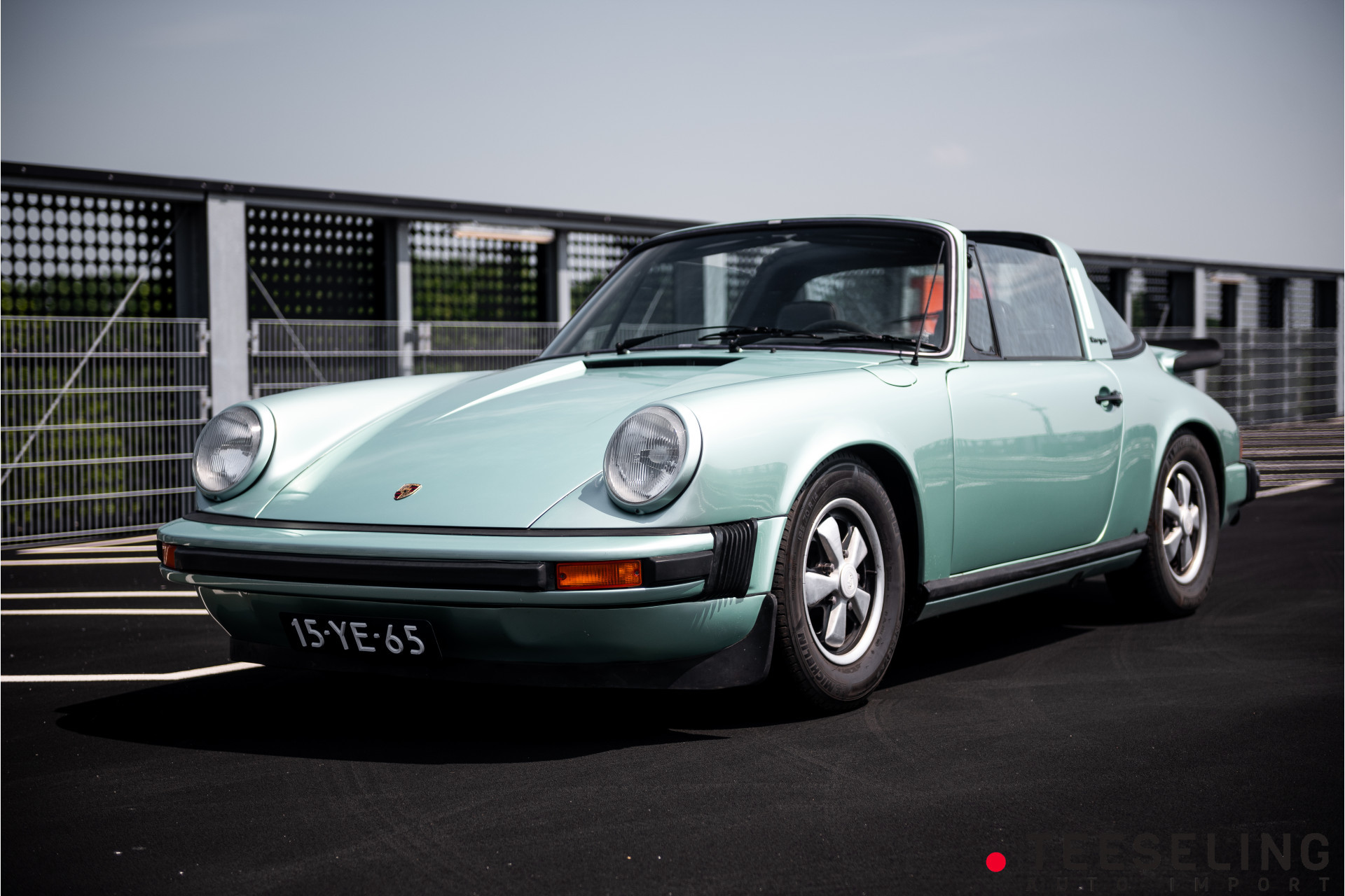 Uniek en origineel exemplaar van de iconische Porsche 911 Targa, geleverd op 29 april 1975 in Duitsland en uitgevoerd in de bijzonder zeldzame fabriekskleur Silbergrün-Diamant (944) – een exclusieve metallic groen-zilveren tint die zelden wordt aangeboden.